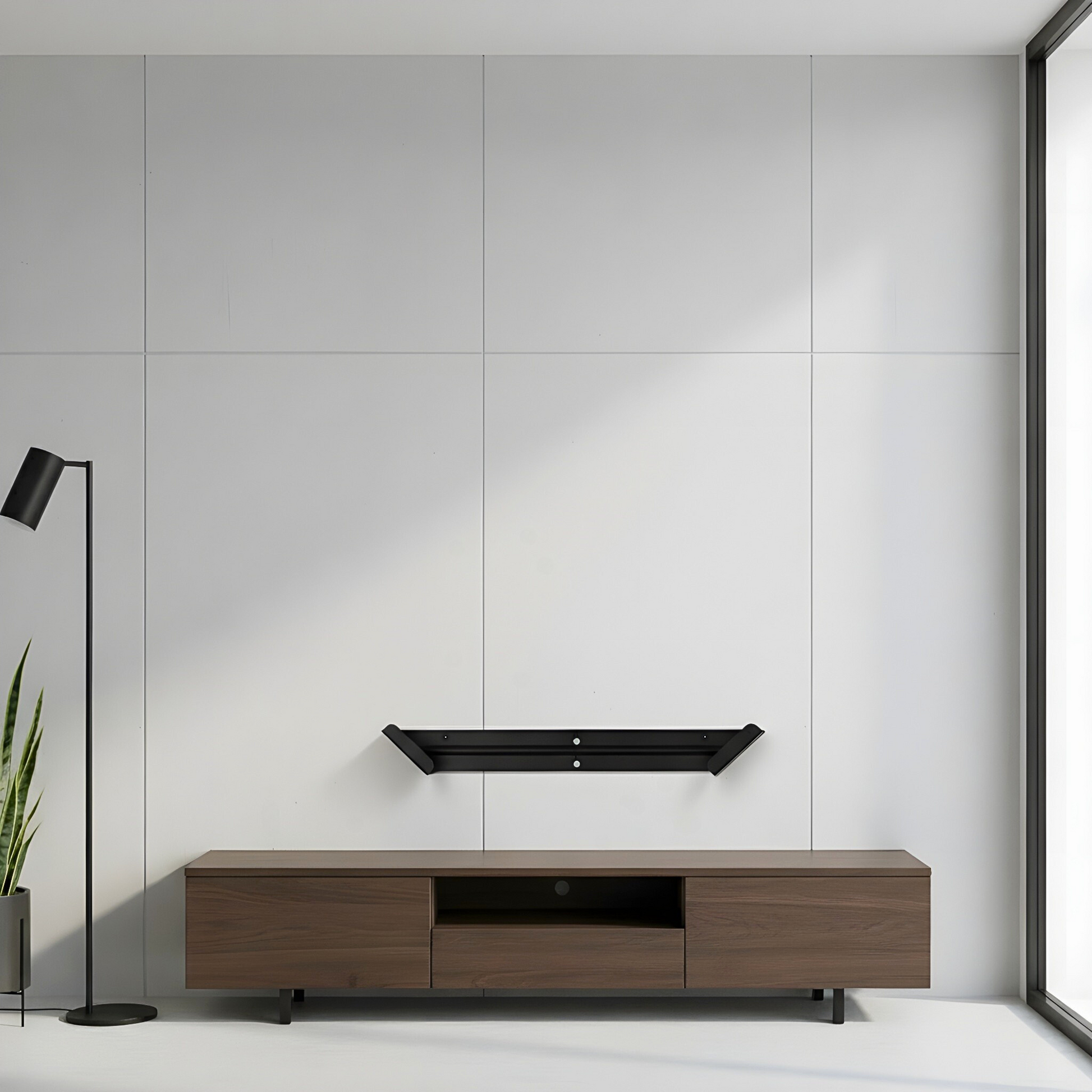 This wall mount is designed to fit all round and octagon-shaped crokinole boards, regardless of size. It features a single-piece construction with just two screws, making installation quick and simple. Made from durable metal and finished in matte black satin, it's both sturdy and sleek. Unlike L-brackets or two-piece mounts, this design minimizes the risk of uneven installation or using the wrong screw size. It mounts directly into a single wall stud, so there's no danger of drilling through the back of your board. For extra security, there are also four optional screw holes available. Made in Canada.
