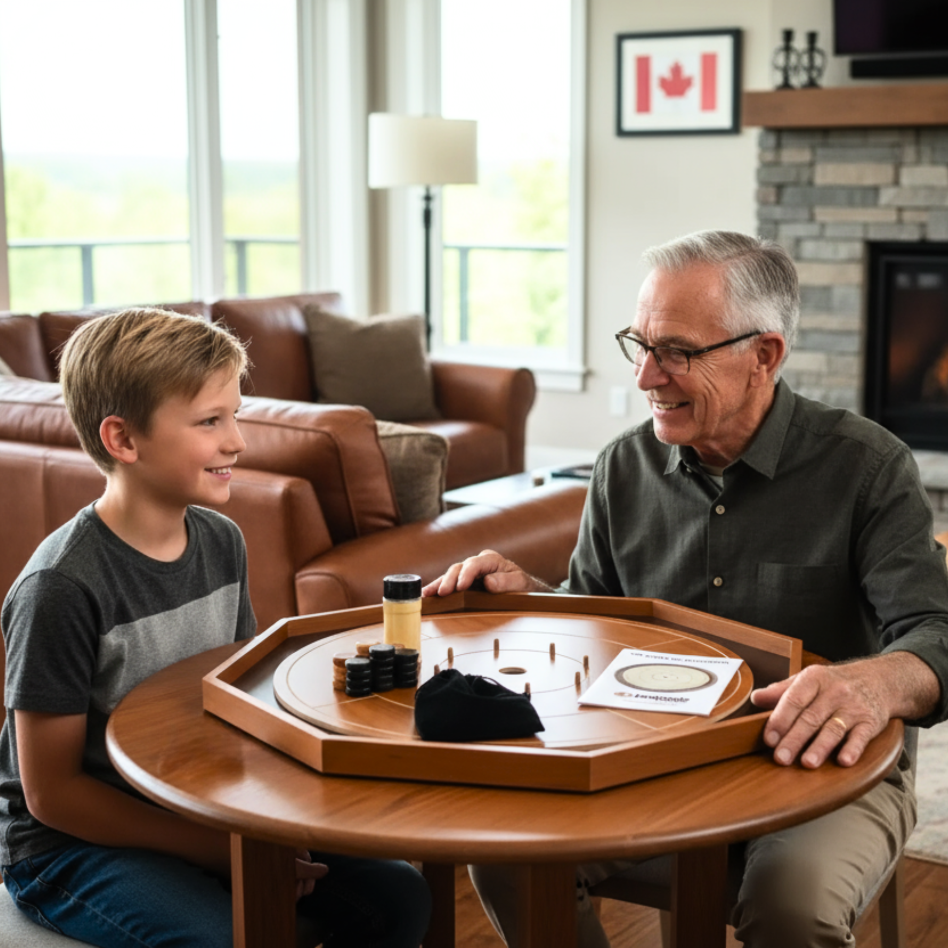 Crokinole Board For Beginners - Cherry & Walnut Melamine - Traditional Crokinole Board Game Set