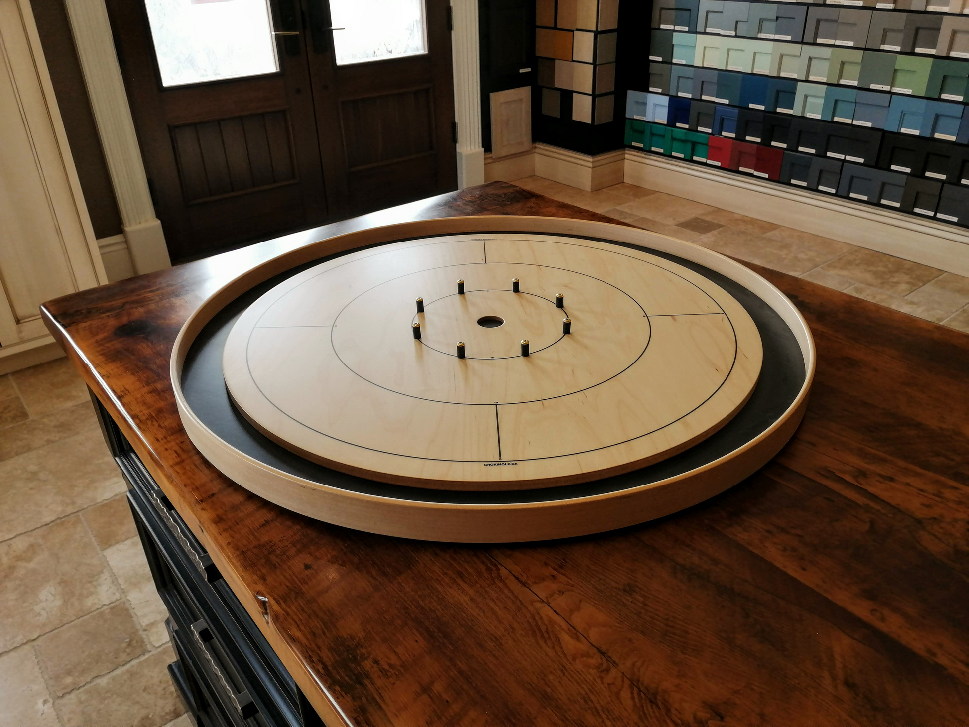 The crokinole boards play normally but may have a small crack here or a blemish mark there. Or have something entirely unusual about them.