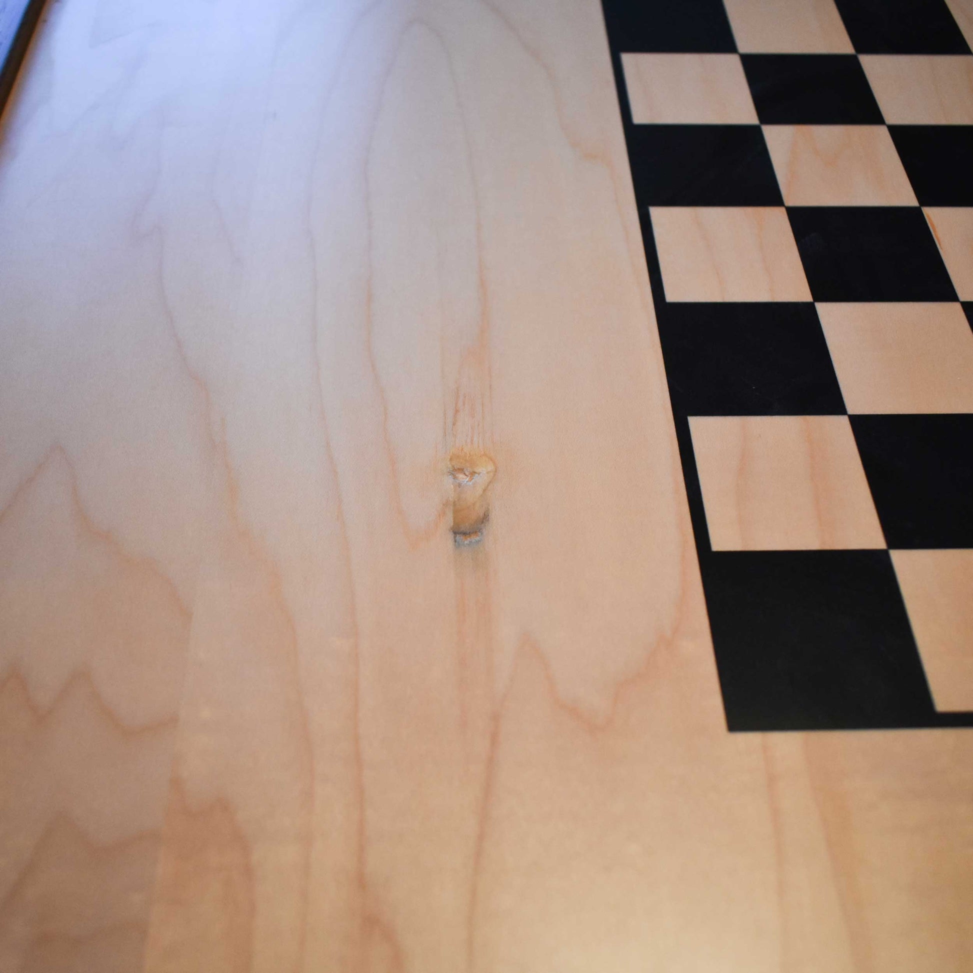 6) There is no checkerboard on the back of the board. This does not affect gameplay on the front of the crokinole board.