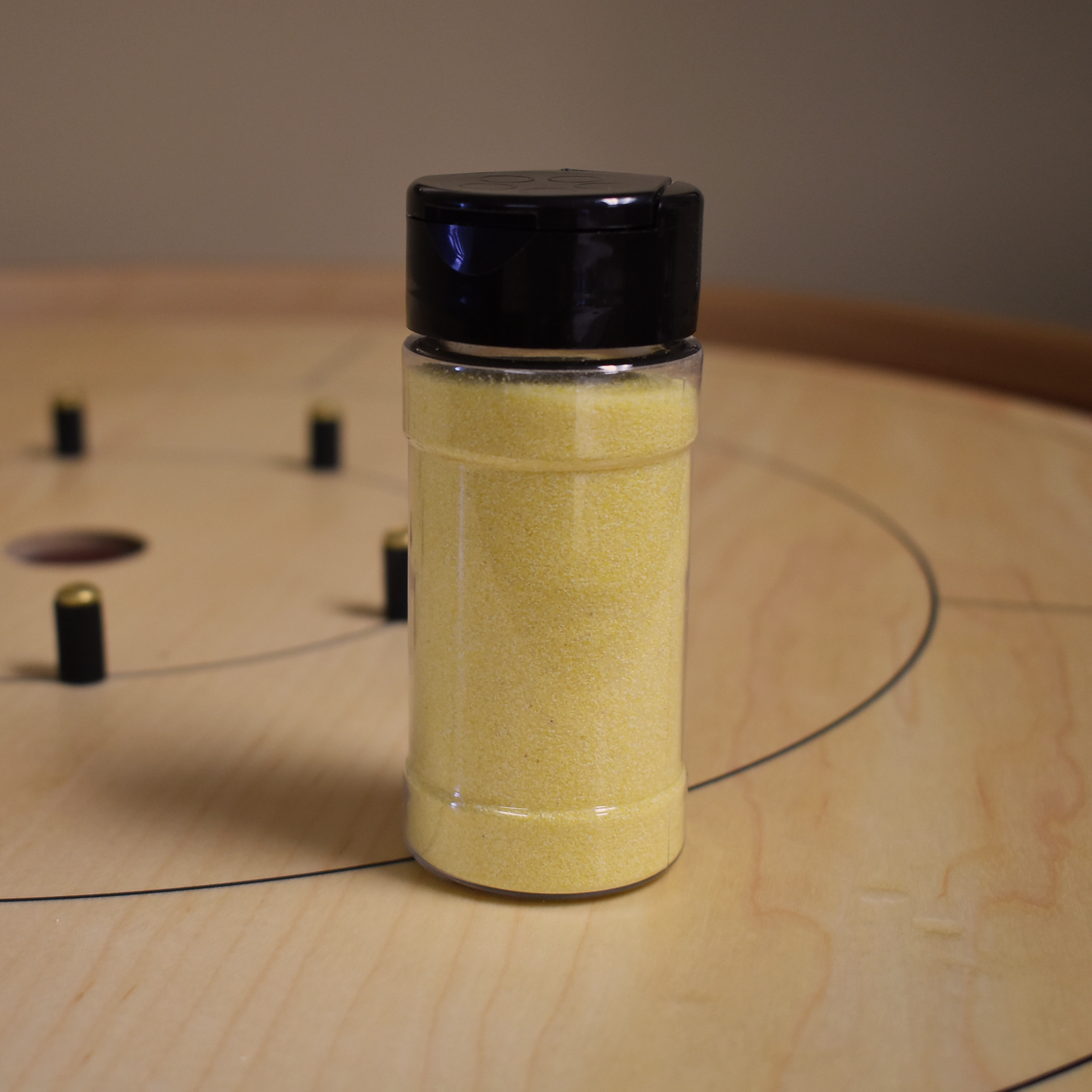 - 100 grams of Crokinole board powder for faster play (put a small amount in the ditch and rub the disc on it before shooting or sprinkle a small amount on the playing surface)
